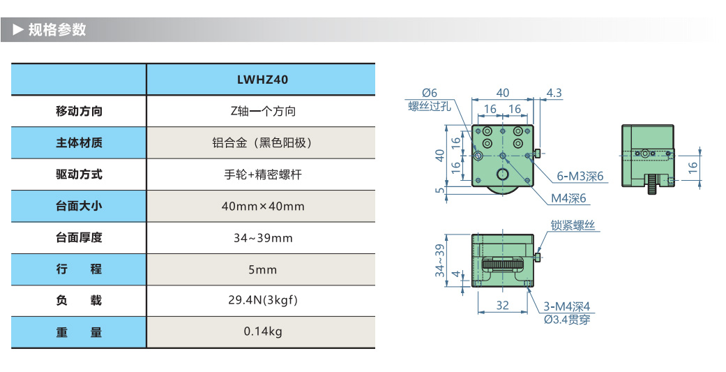 1.采用精密螺杆驱动,旋钮旋转1圈为0.5mm。