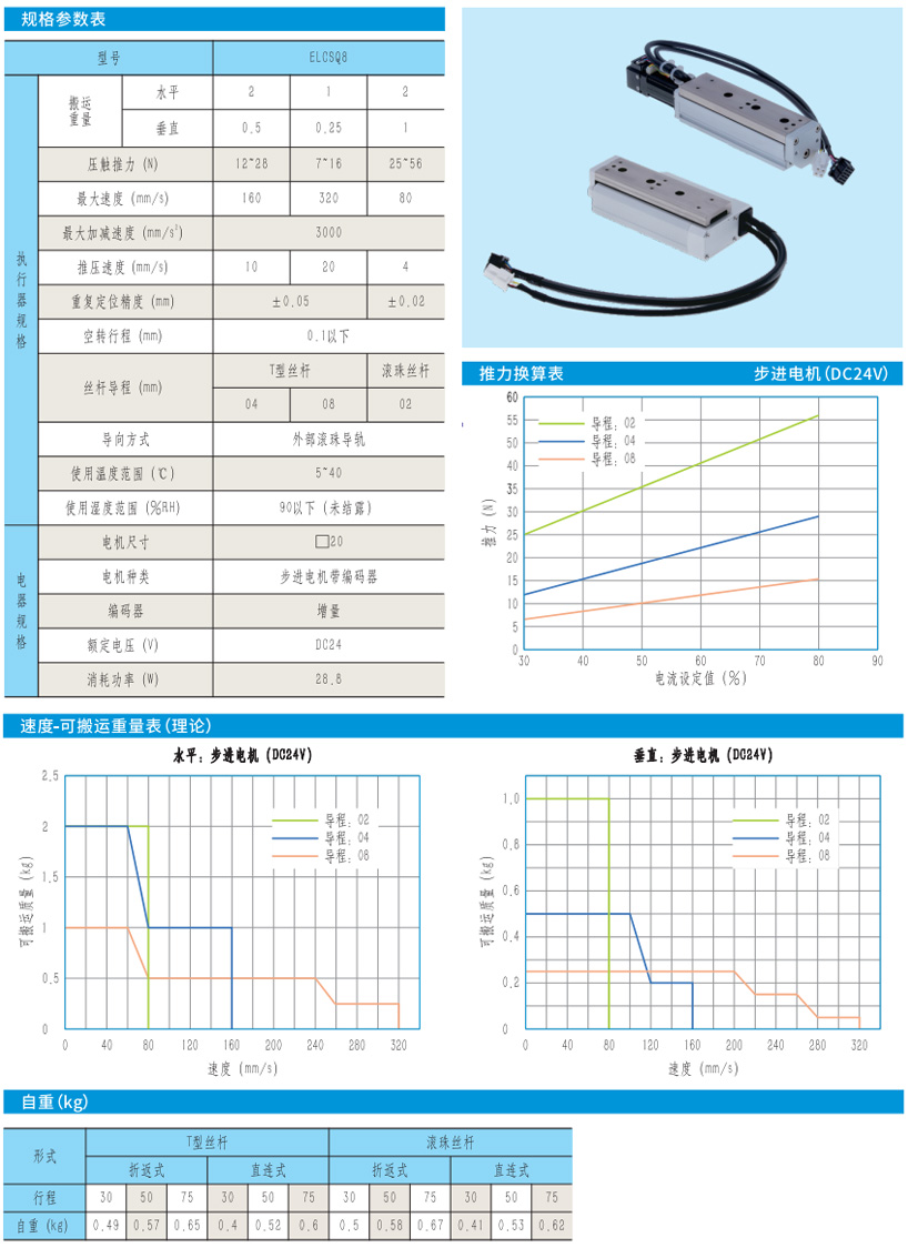 采用高精度的滚珠丝杆和T型螺杆,定位精度可以达到±0.01(滚珠丝杆)和±0.05(T型螺杆),电机部分采用带编码器的闭环步进电机或者伺服马达,精度高,不易丢步。