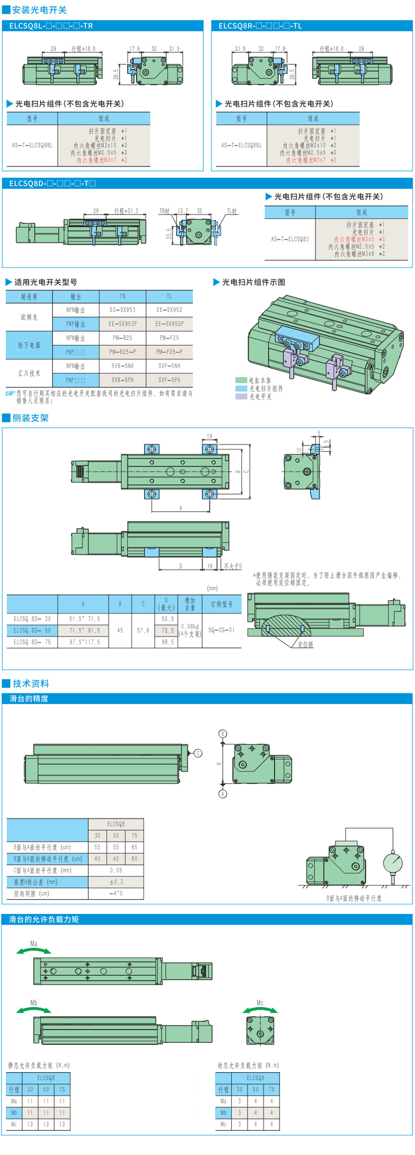 1.请在额定负载范围内使用滑台:请根据MAX搬运重量、允许力矩进行型号选定。如在超负荷使用,会造成导轨部产生间隙、精度变差。