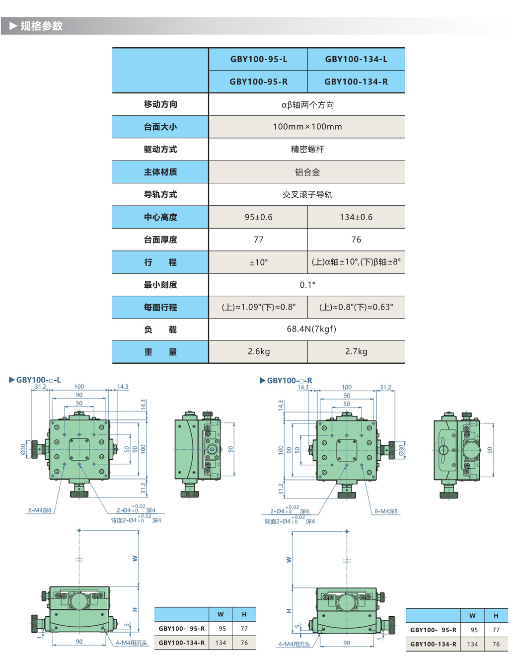 3.驱动方式可选择蜗轮蜗杆、微分头和丝杆。