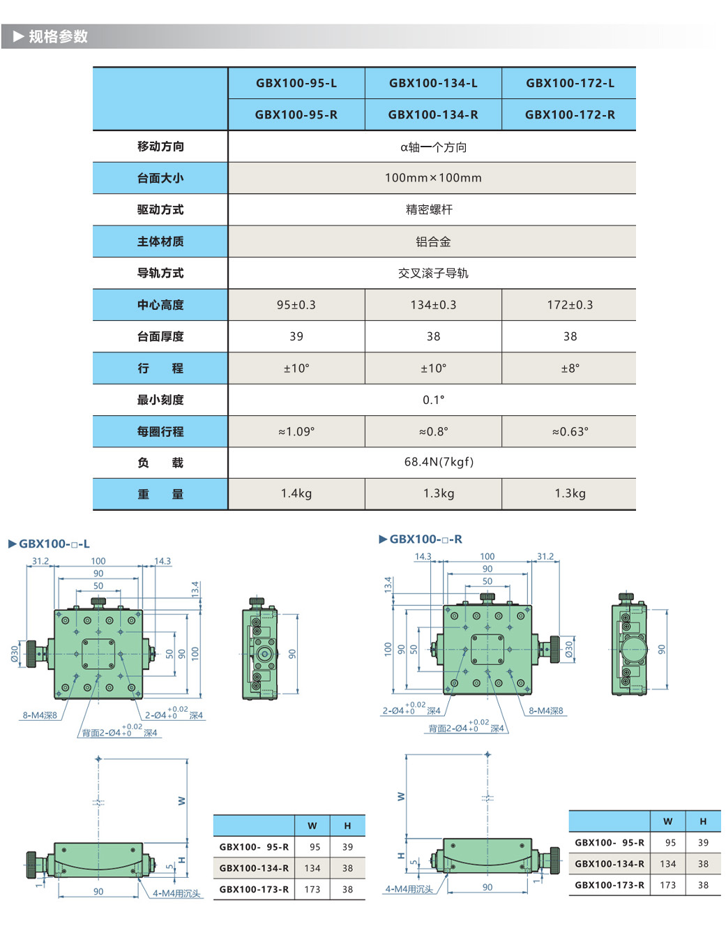 3.驱动方式可选择蜗轮蜗杆、微分头和丝杆。