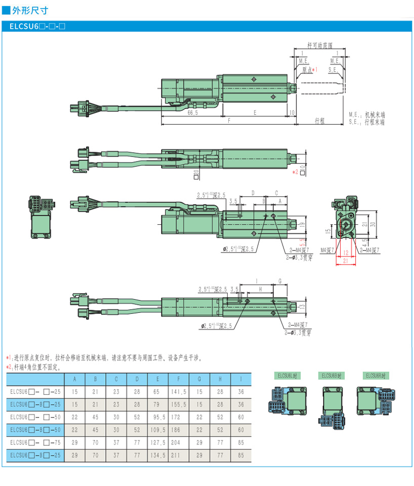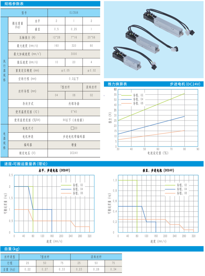 9.活塞杆前端的允许负载:ELCSU系列电缸无外部导向装置,请参考下表的允许负载,如向活塞杆施加过大的载重,将会损坏电缸,请注意!