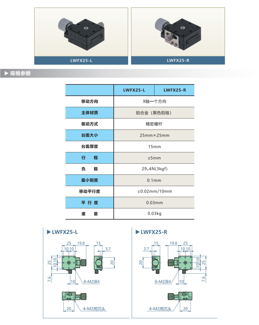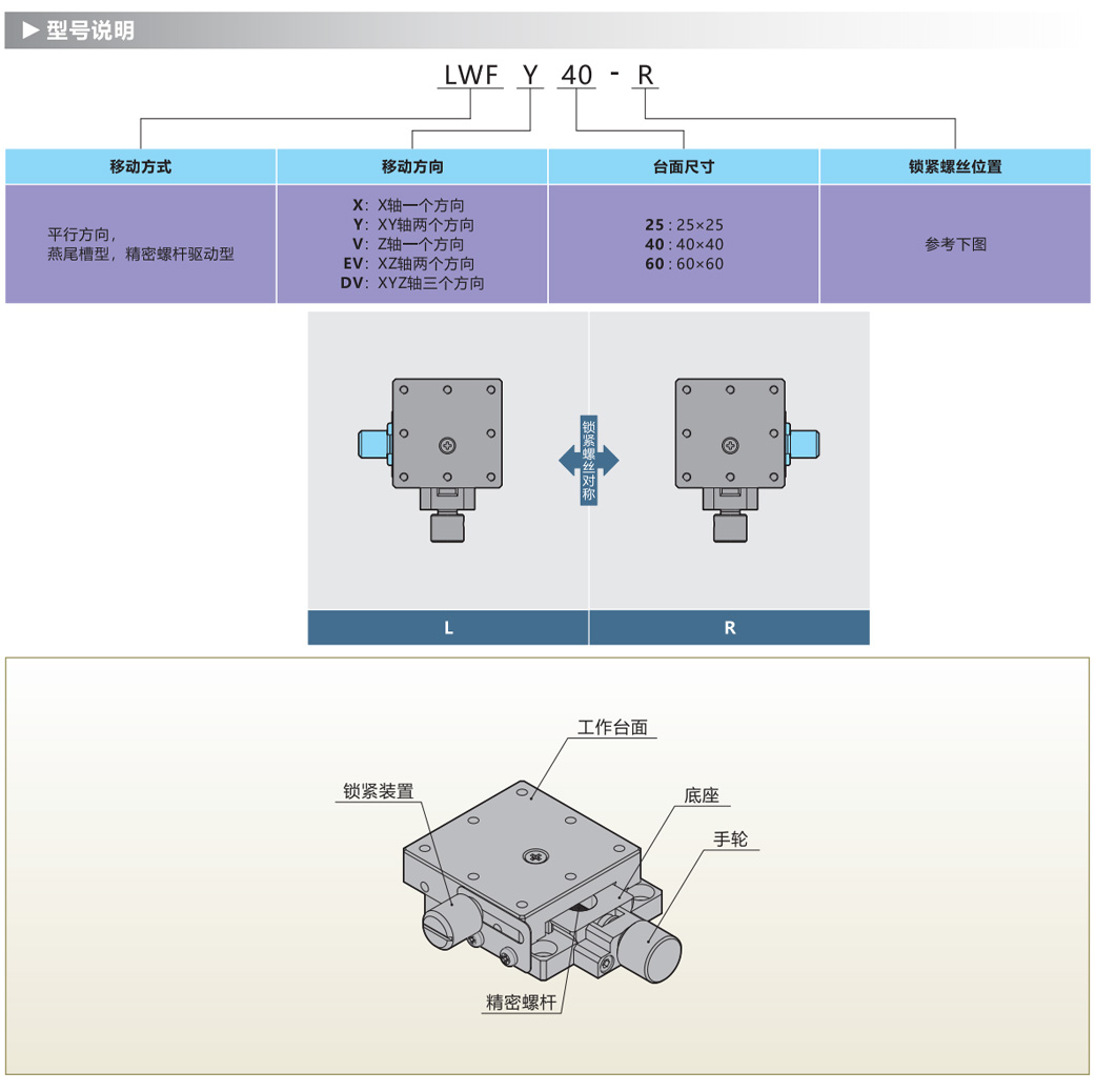 1.采用精密螺杆驱动,旋钮旋转1圈为0.5mm。
