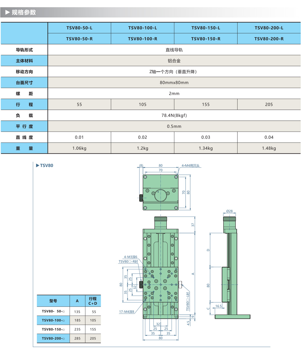 1.采用精密直线导轨和螺距为2mm的T型丝杆。
